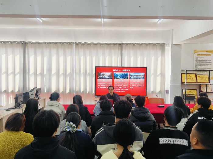 为深入学习贯彻习近平新时代中国特色社会主义思想,进一步加强校党委对思政课建设和大学生思想政治工作的领导,12月3日下午,校党委书记鲍习生来到学校大学生“一站式”社区活动中心,以“在党旗下成长 做更好的自己——智商、情商、行商与新时代青年修为”为题,为师生讲授了一堂精彩的专题思政课。马克思主义学院、团委、各二级学院团总支负责人和辅导员、学生骨干等近百人在现场听课。