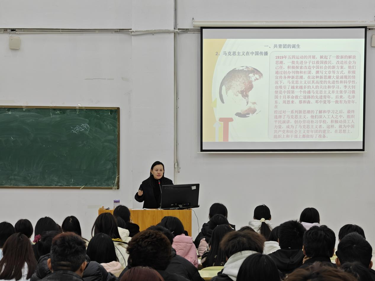 培训由校团委老师担任主讲。课程从共青团的历史沿革与章程核心要义切入,深入阐释新时代共青团的职责使命与团员标准。借助典型案例剖析、历史情境还原等方式,抽象的理论知识转化为具体可感的成长指引,帮助学员清晰把握共青团的光辉历程与新时代要求。此外,课程注重将社会实践、志愿服务与“挑战杯”赛事经验分享等内容有机融合,通过生动实例展现青年学子以实际行动践行社会责任的生动图景,为学员搭建起理论联系实际的学习桥梁。