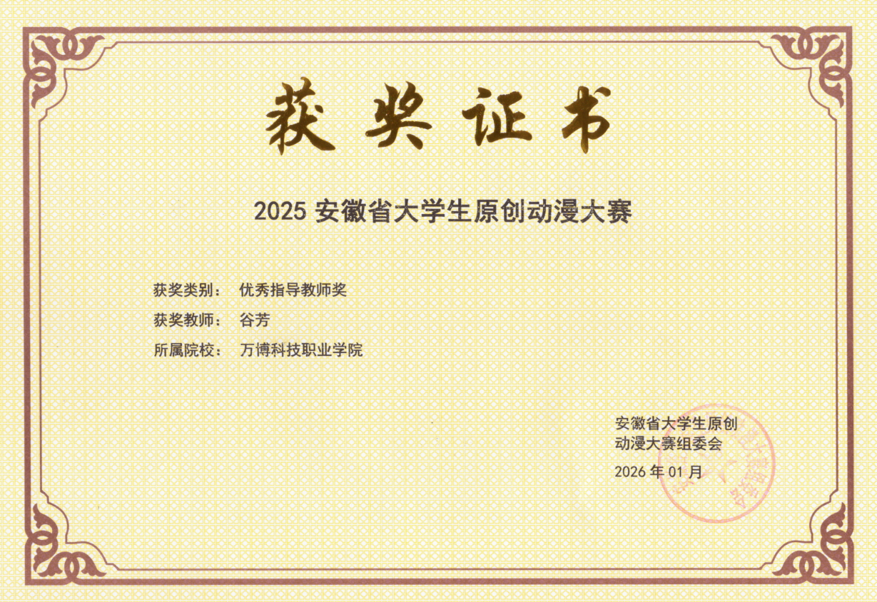 近日,2025年安徽省大学生学科竞赛评选结果正式揭晓。我校在安徽省大学生原创动漫大赛、安徽省大学生环境设计大赛和安徽省大学生摄影作品大赛三项省级B类学科竞赛中共获一等奖1项、二等奖1项、三等奖4项,并有1名教师荣获省级“优秀指导教师奖”。