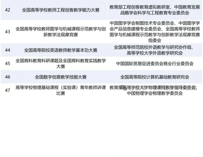 2025年全国普通高校教师教学竞赛目录
